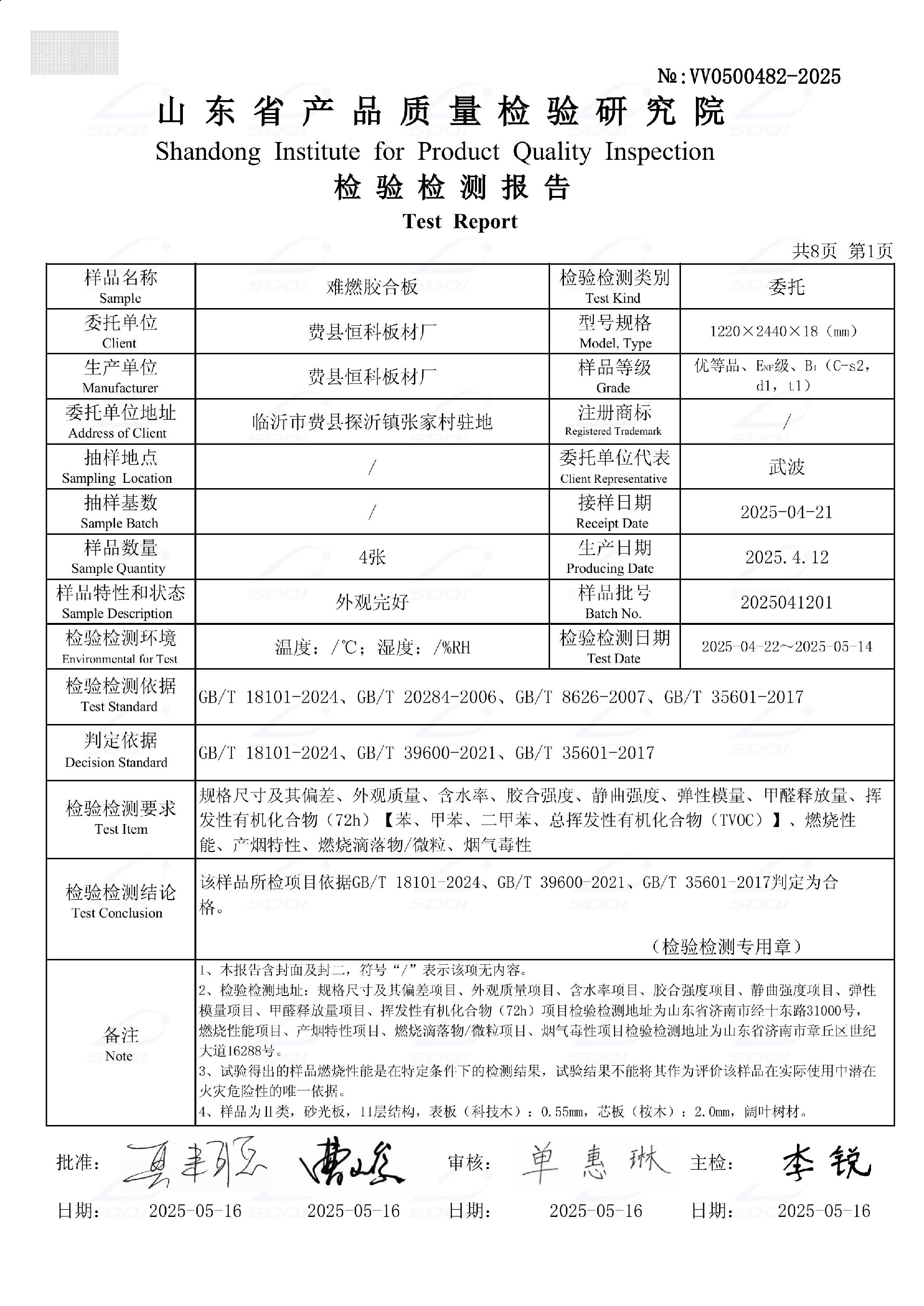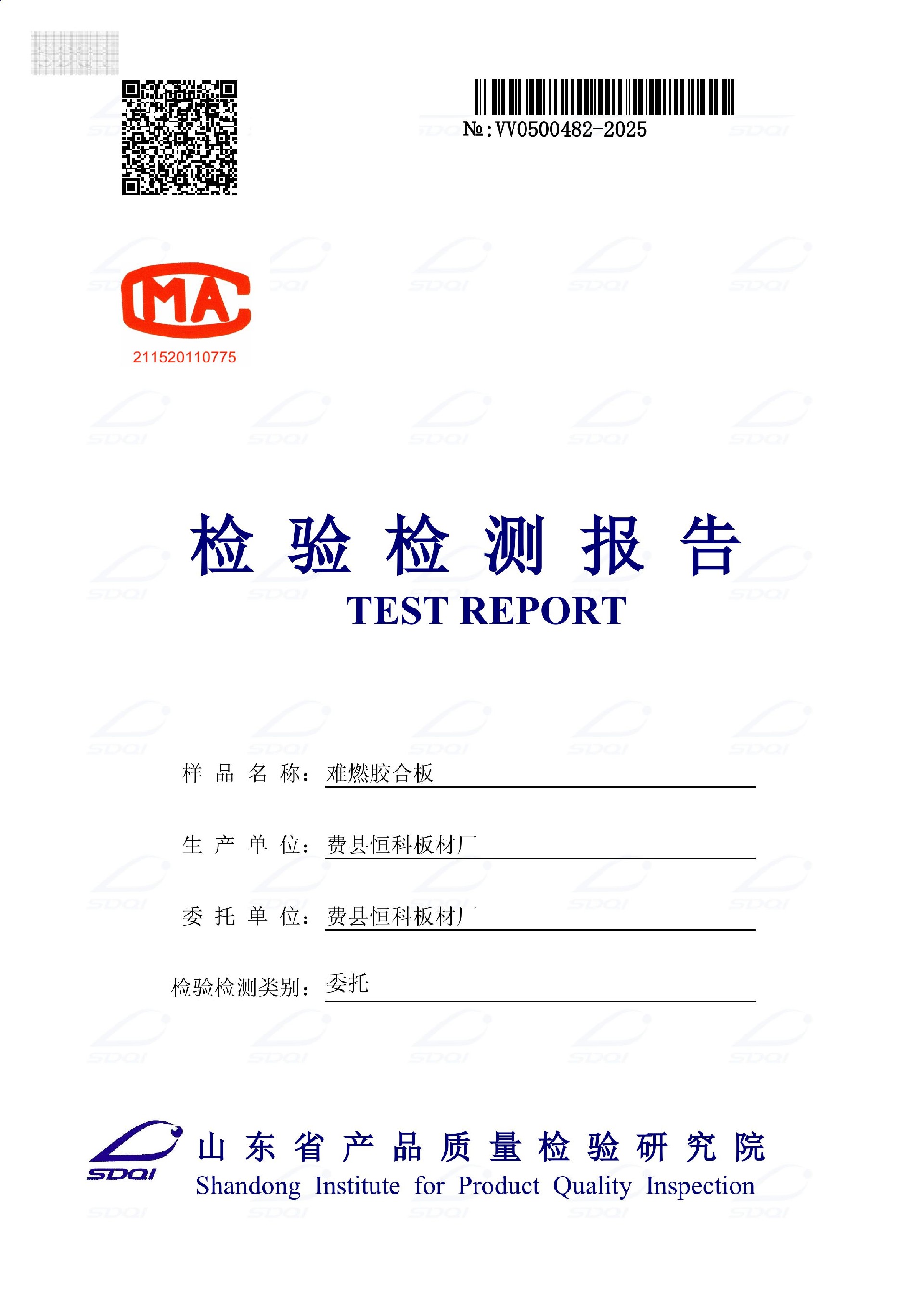 难燃胶合板检验检测报告